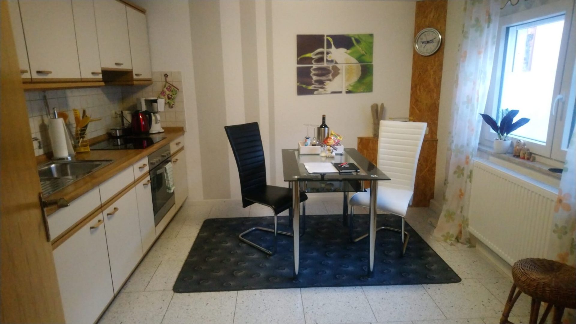 Eine moderne, gepflegte und geschmackvoll eingerichtete Ferienwohnung mit Top-Küchenausstattung im 1. OG eines Zweifamilienhauses lädt mit einem großen Südbalkon zum Verweilen ein. Freundliche Vermieter heißen die Urlauber willkommen, stellen die Heimatstadt vor, zeigen den kürzesten Weg zur FrankenTherme und hoffen, dass sich ihre Gäste wohlfühlen.